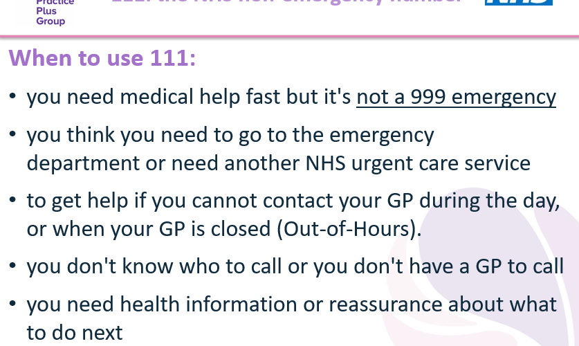Most people use NHS111 when their GP is closed or it's not possible to get an appointment.