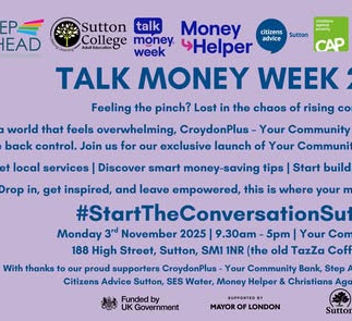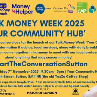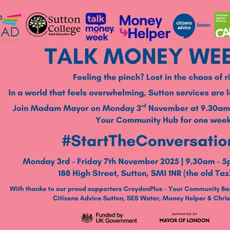 Together for Sutton and other local partners are inviting you to #TalkMoney this year with a host of events from November 3rd - 7th.